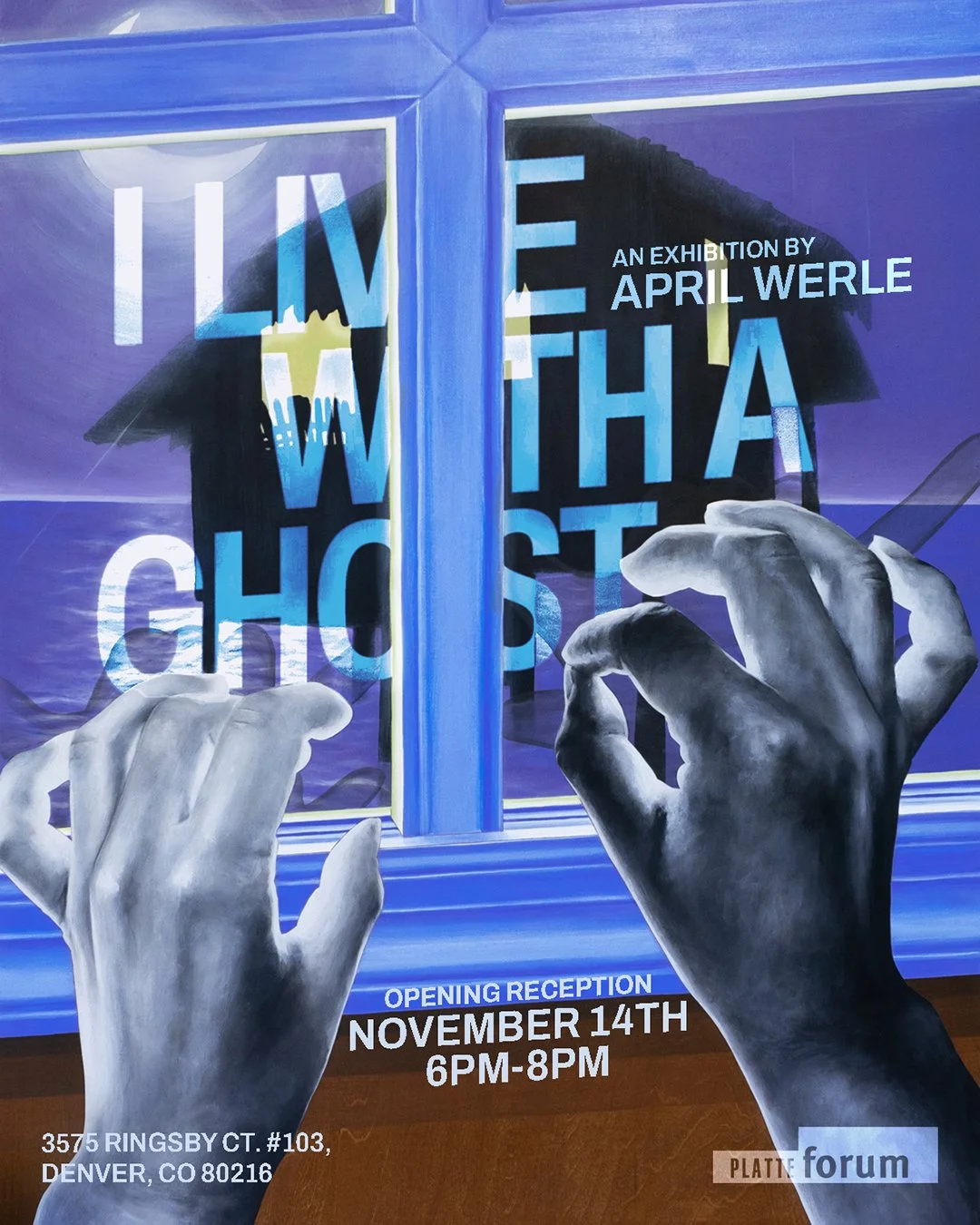 April Werle’s exhibition, I Live With a Ghost, follows two characters as they navigate a haunted house—where racial identity appears as a haunting presence, a lurking deity, or a glowing idol.